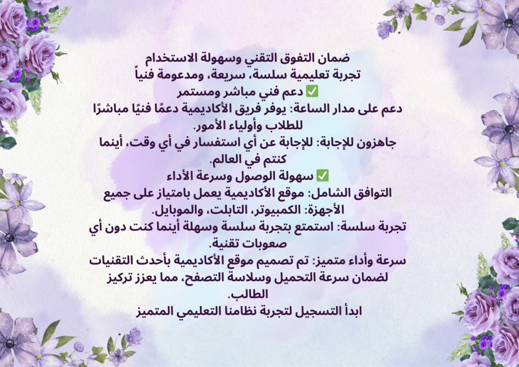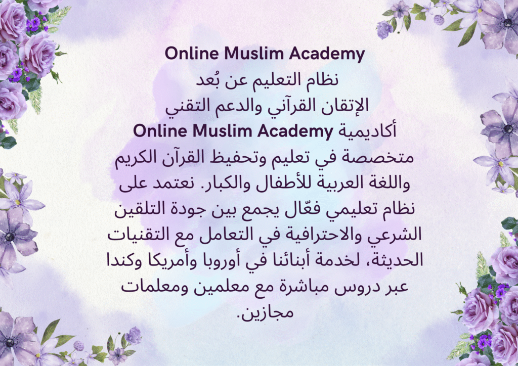 نظامنا يوفر مواعيد مرنة للغاية تناسب جميع المناطق الزمنية، مع متابعة مستمرة لتقدم الطالب. تعليم القرآن أونلاين وتعليم اللغة العربية للمغتربين بجدول يناسبك (Quran Online Classes).